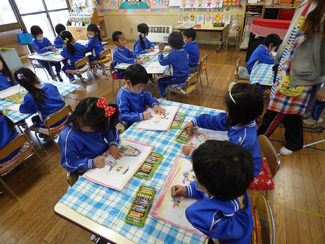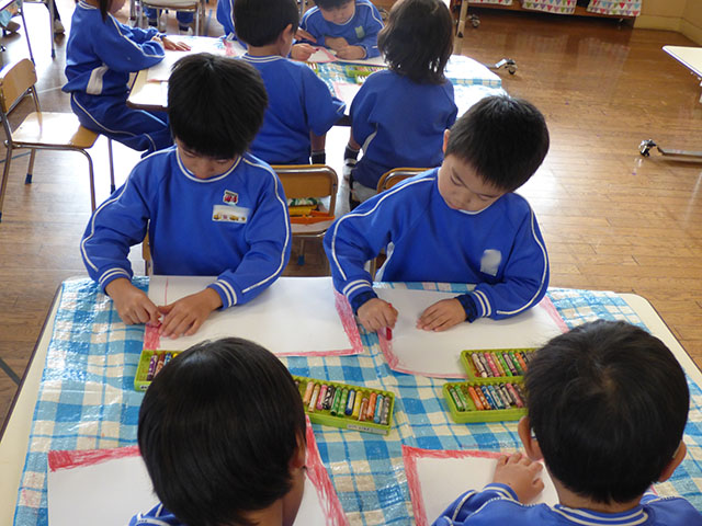 お遊戯会の絵を描きました