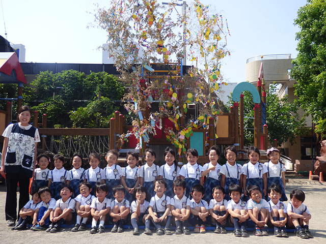 そこで・・・各クラスごとに笹の前で集合写真撮りました
