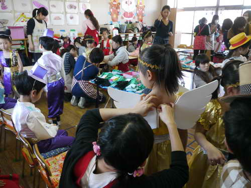 お手伝いをしてくださるお母様方も後ろに飾る絵を取り替えてくださったりと舞台の中でも大忙し!