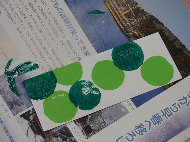絵の具のタンポを使って
