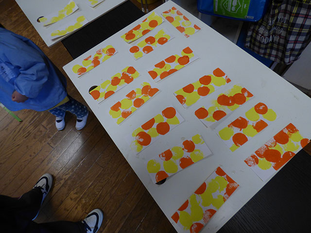 今日、年少組さんが年長組のお兄さん・お姉さんの為にプレゼント作りを始めました
