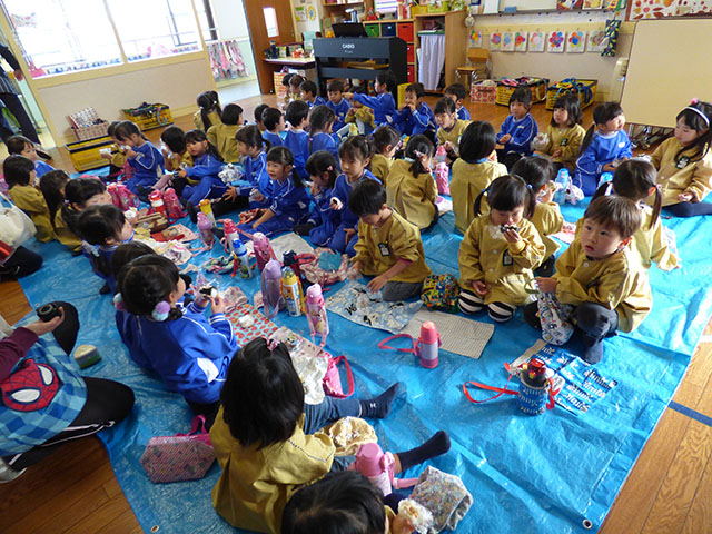 年少・年中組は昼食タイム