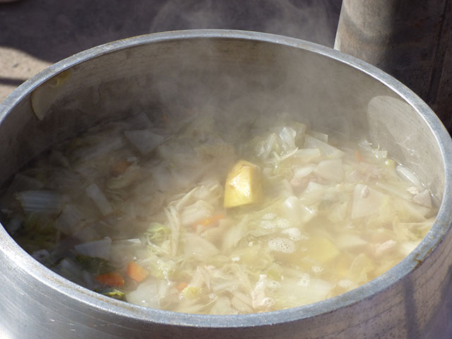 みんなで作った芋煮汁は