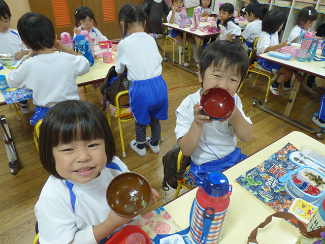 芋煮汁はお昼の時に