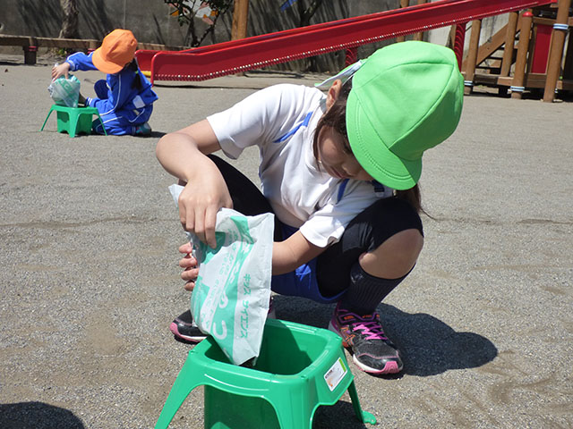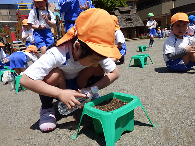 今日は年長組であさがおの種まき