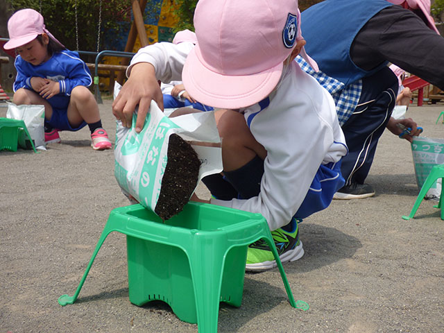 語りかけながら植えている姿が