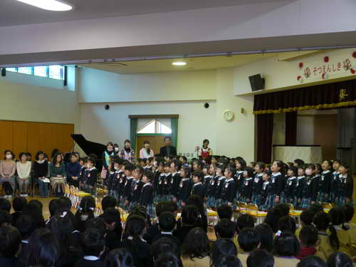 あと少しで卒園・・・今日の練習でもかっこいい年長さんでしたが実はすご~く緊張しての予行練習参加となったようです!年長さんを送る年少さん年中さんも頑張って練習に参加してくれました!卒園式の日も元気にお別れの言葉やお歌で送ってあげようね!