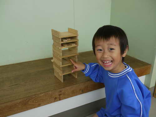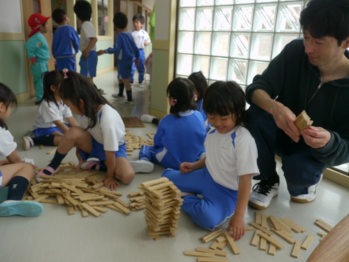 おはなしコーナーではKAPLAでタワーをつくったり