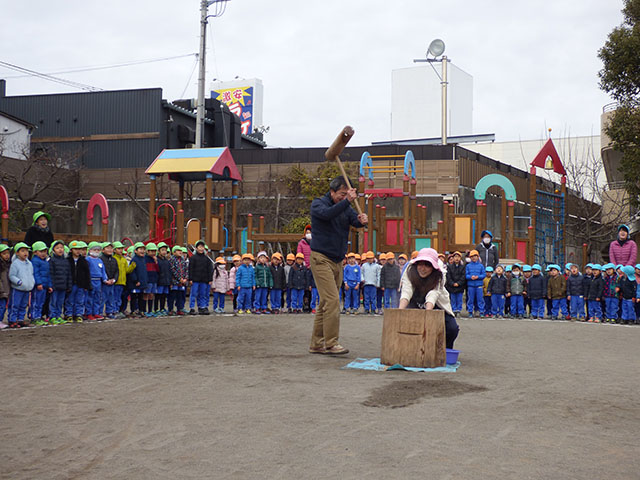 今日のおもちつきでは、みんなとても楽しみにしていました