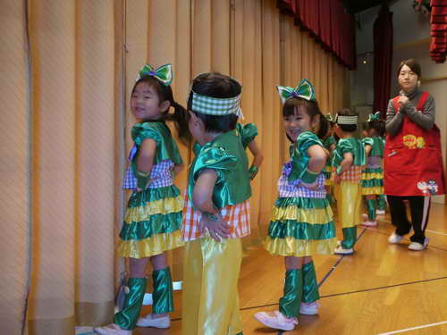舞台の袖には必ず担任も一緒に踊って歌って子ども達を励まし続けています