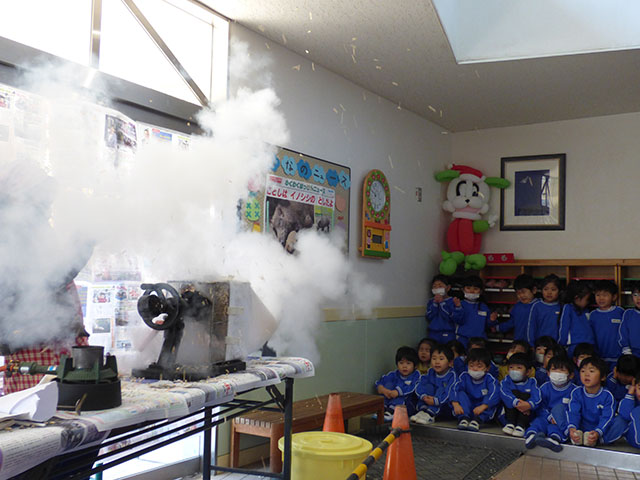 おやつのポン菓子では、作っている様子に大興奮な様子でした