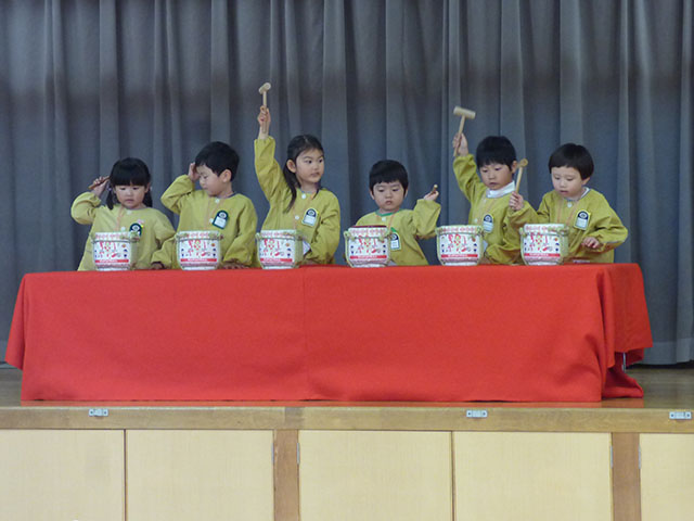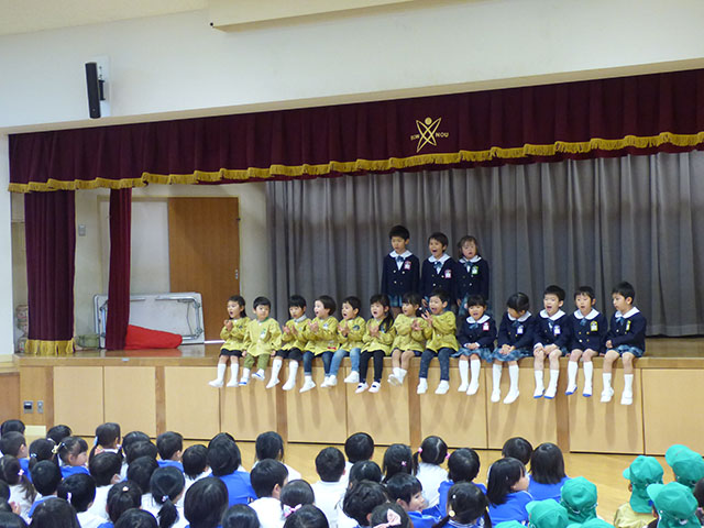 年少組さんにとっては全てが初めてで、ステージの上でドキドキ
