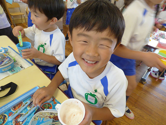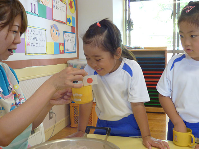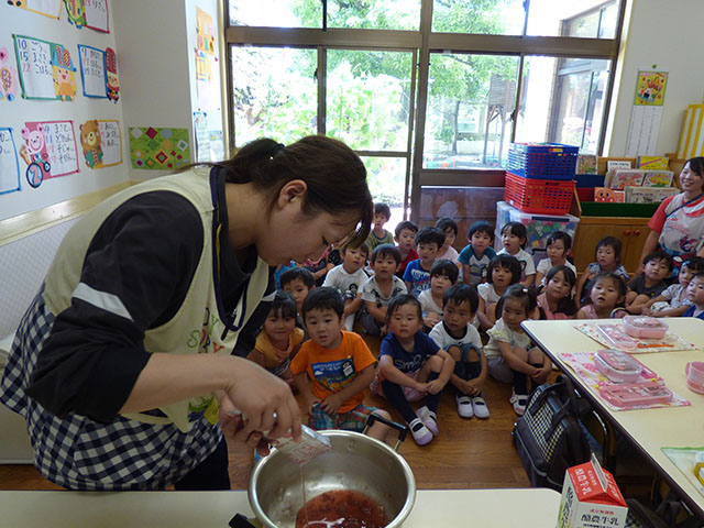 今回のおやつは、お部屋でみんなの目の前で作ってくれ、わくわく