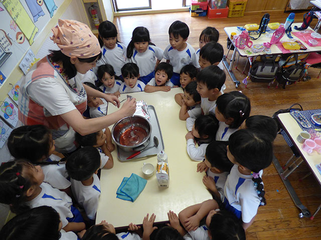 今回のおやつは、お部屋でみんなの目の前で作りました