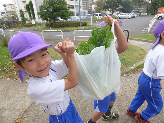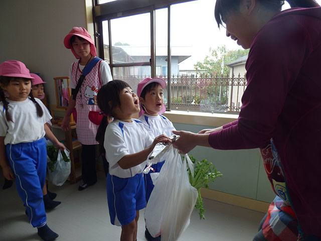 年少組と年中組で芋煮会の為の材料を買いに行きました