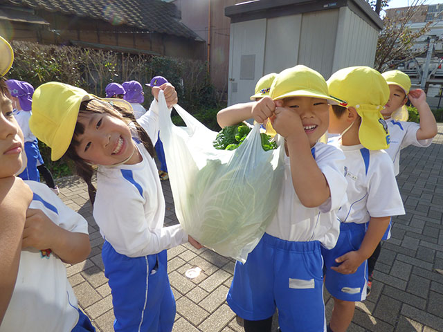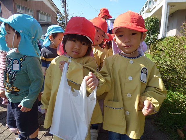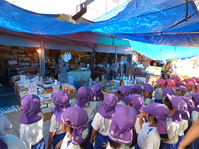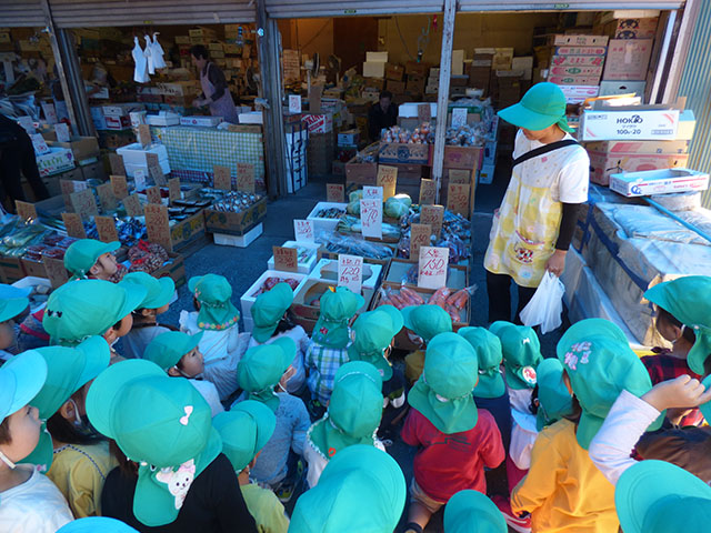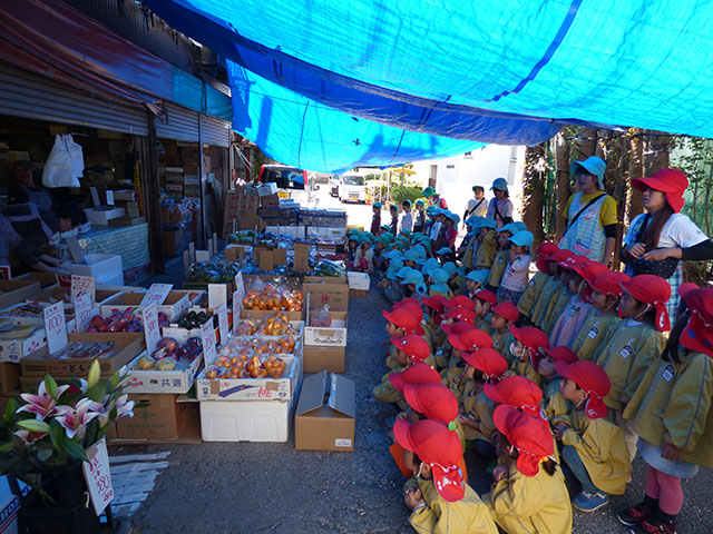 今日は、年少組・年中組がかあちゃん八百屋へ芋煮会の材料を買いに行って来ました