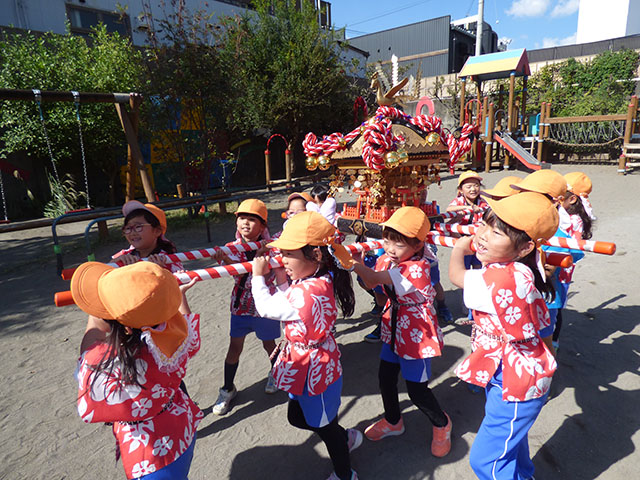 園庭では、さつまいもの収穫を祝って