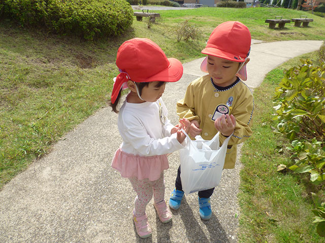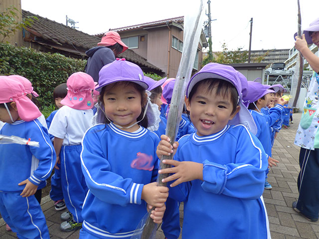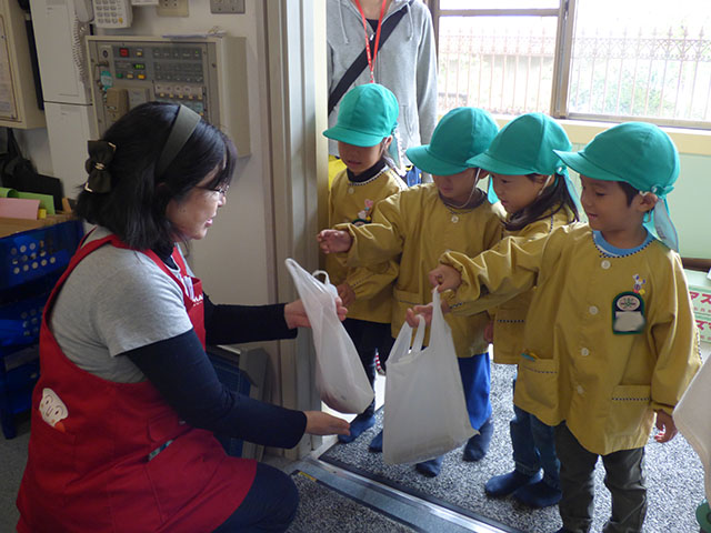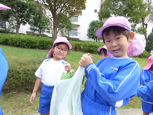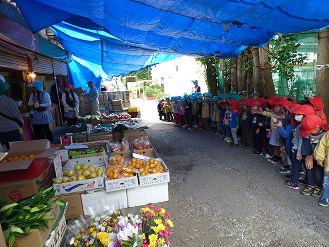 今日は、年少組・年中組が芋煮会の為の、材料を買いに行ってきました