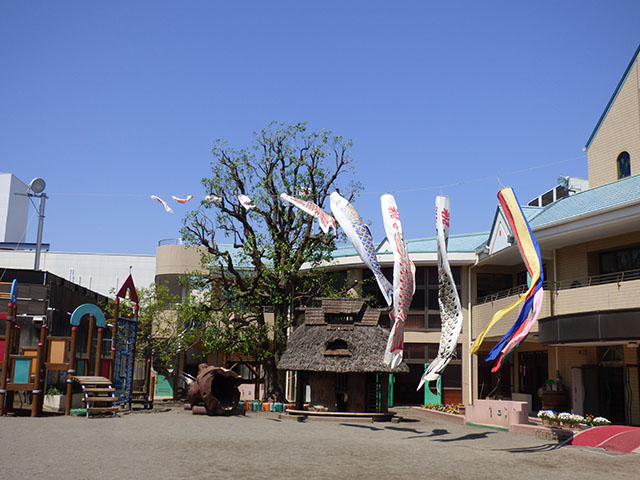 久しぶりの日差しの中、園庭にこいのぼり