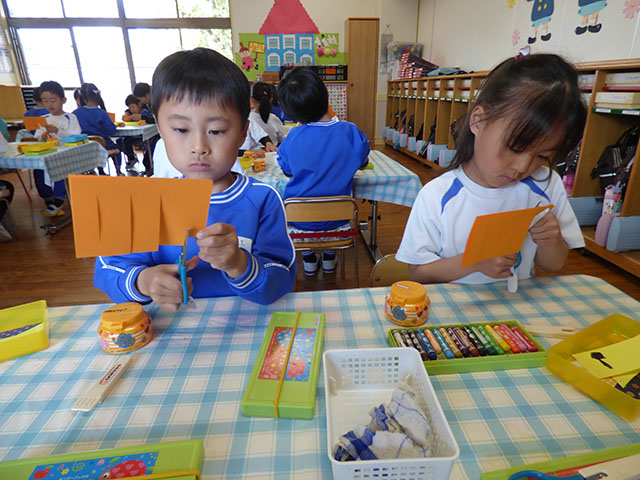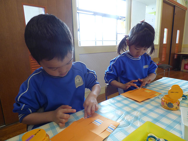 二つ折りにした色画用紙に切り込みを