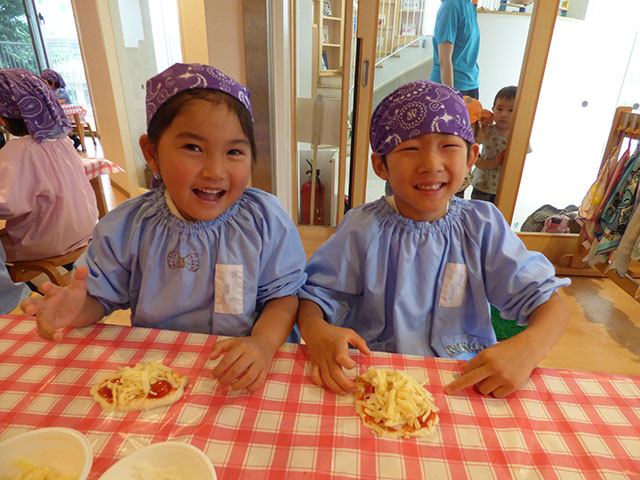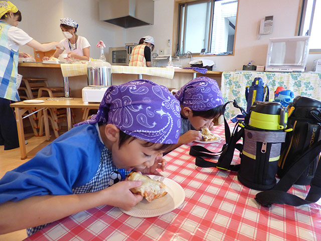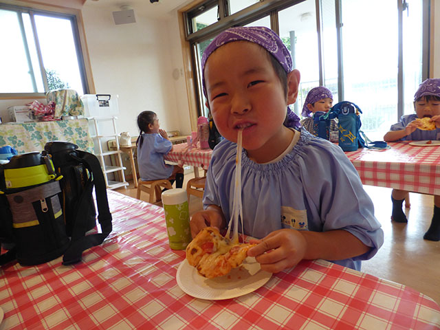 まだかまだかと待ちわびたピザパーティーにワクワクしていました
