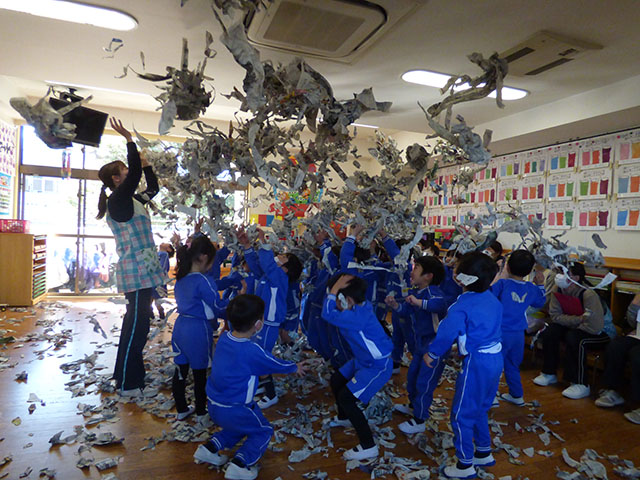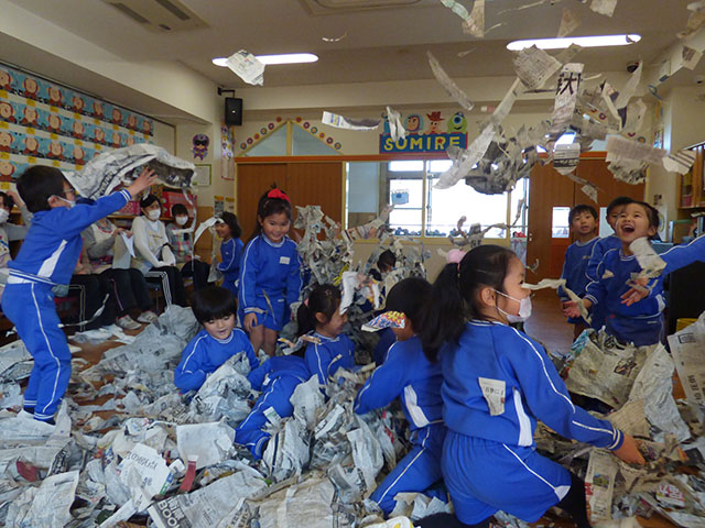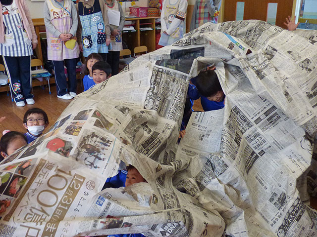 遊んだ後もゴミになるのでは無く、リサイクルされまた新聞紙に戻るということも知りました