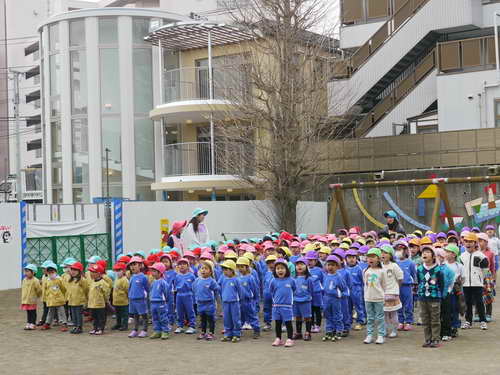 お友だちが少ないです・・・そうなんです。年長さんが卒園したので今日の全体集合はちょっぴりさみしくコンパクトでした!