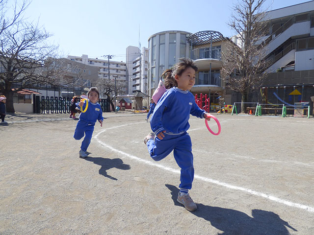しっぽとり大会では、園長先生も参加し、全力で追いかけあっていました