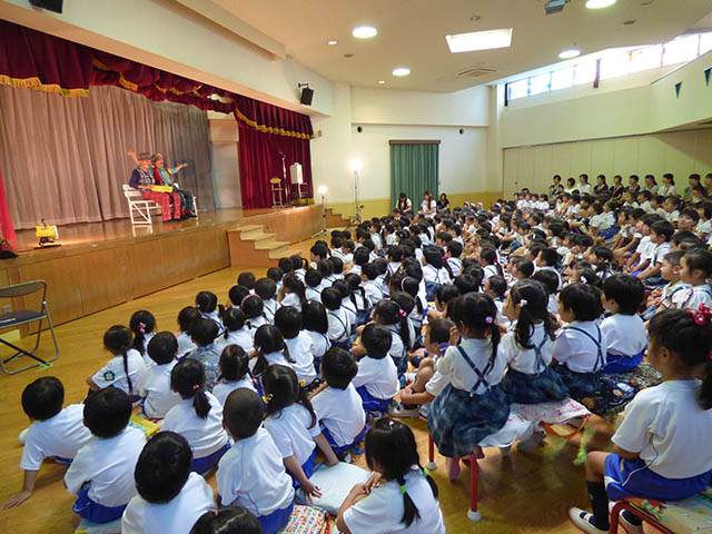 1学期に頑張ったご褒美にと、今回はマイムランドさんのパントマイムショー