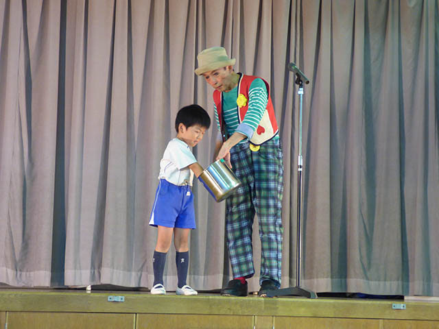 ピエロの姿に驚いたお友達もいましたが、パントマイムやマジックショーに
