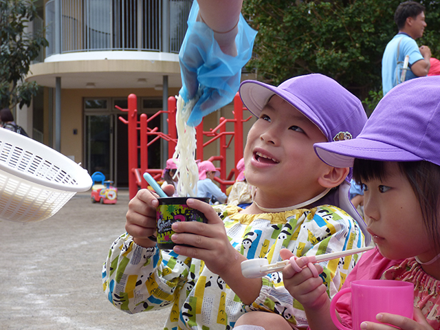 今日は、わんこそばならぬ、わんこそうめんを行いました