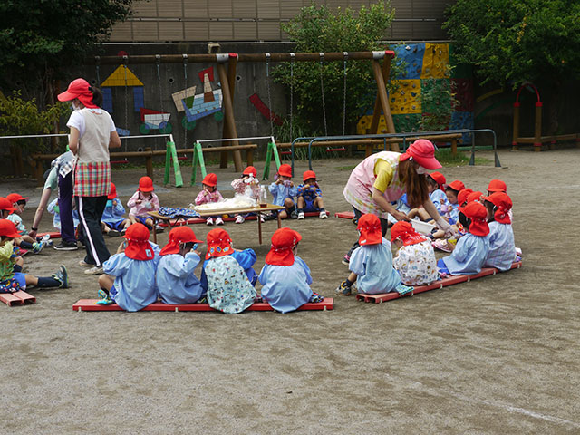 園庭で円になって