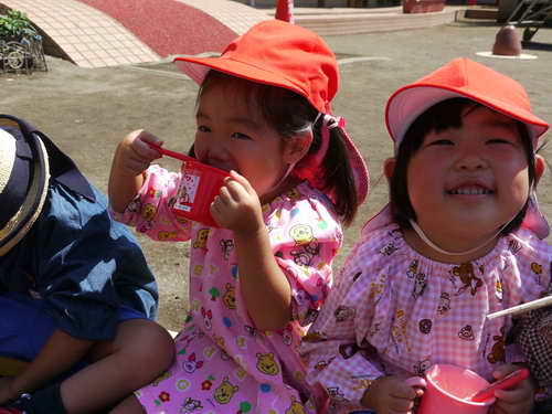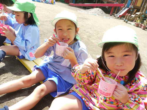 絵に描いたような青い空の下で 今日は気持ちよく『わんこそうめん』ができました