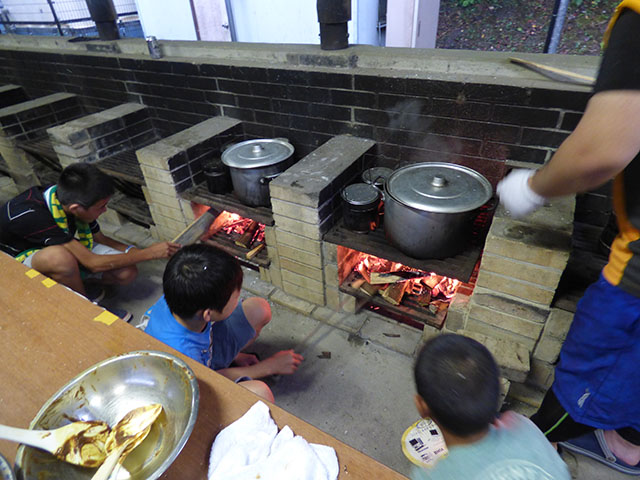 お兄さんたちは釜戸のお手伝い