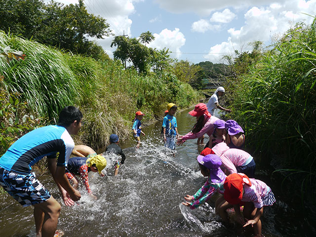 カレーを煮込んでいる間に、川遊びへ