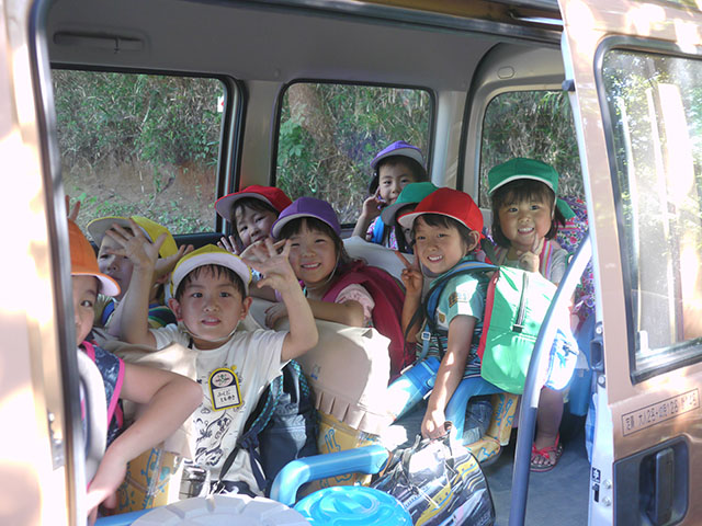 バスに乗って幼稚園に帰ります