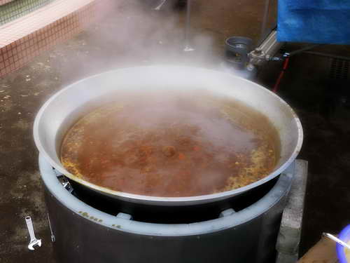 この大鍋300人分くらい作れちゃうんですよ