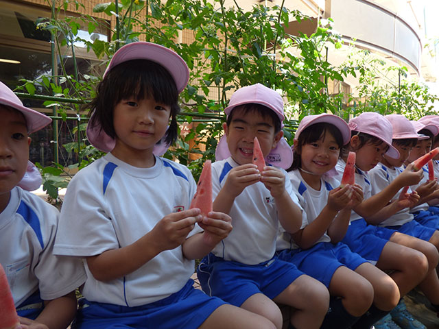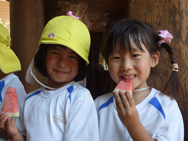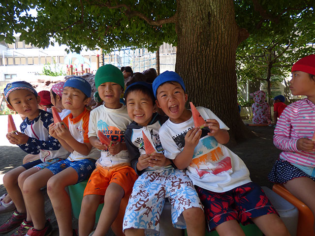 今日も、とっても暑い一日でしたねこんな日にとっておきの・・・美味しいスイカをいただきましたクラスごとにタイミングを見つけていただきます甘~い匂いがするよ美味しそう~一口 パクッ甘~い とっても美味しいよ 美味しかったので・・・真っ白になるまで食べちゃいました最近、暑い毎日が続いています水分・塩分・糖分もしっかり取りながら、体調を崩さないよう気をつけましょう