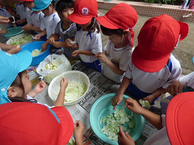 年中組はキャベツちぎりと