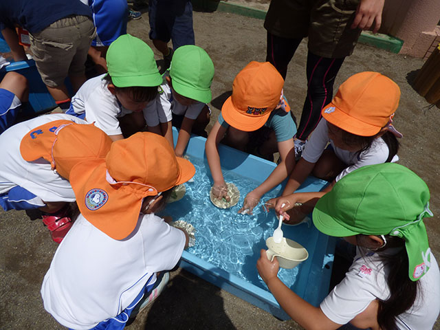 年少組はもやし洗いと