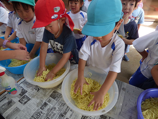 各学年に分かれて調理開始