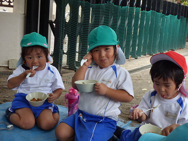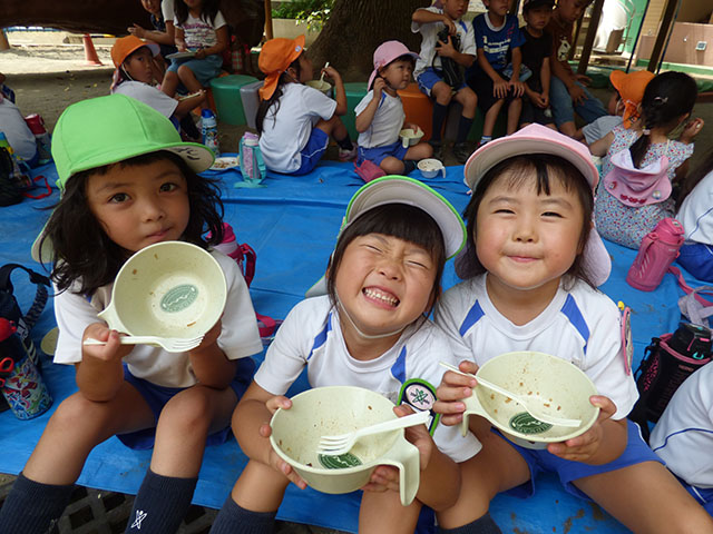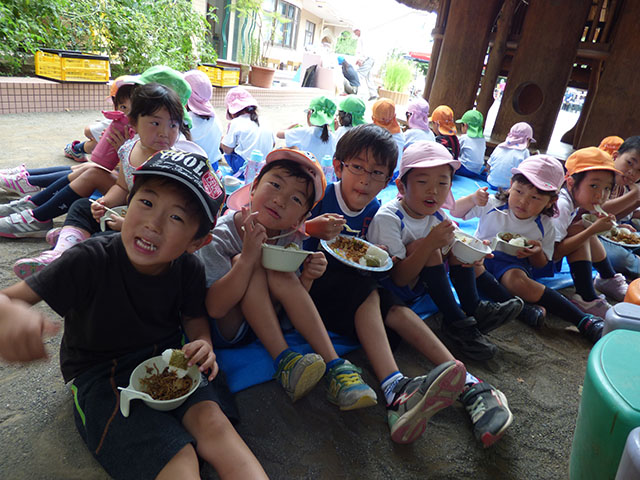 一生懸命に調理して、みんなでお腹いっぱいに美味しくいただきました