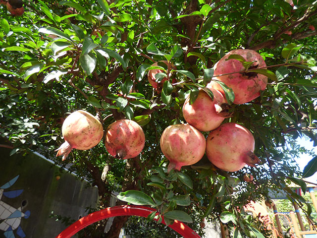 園庭のザクロの木に