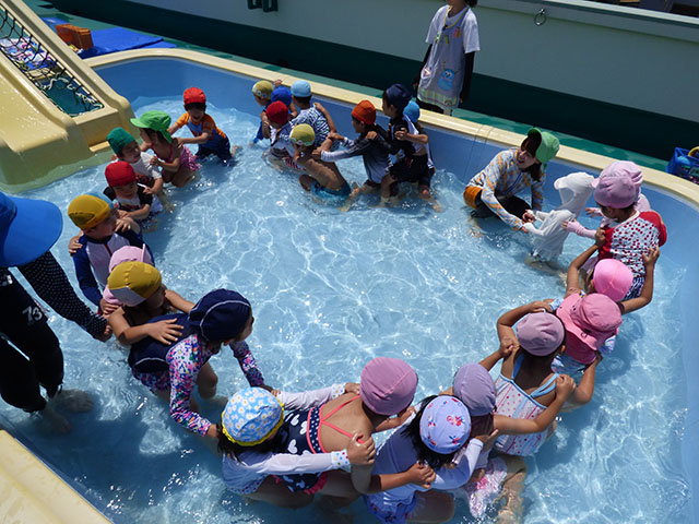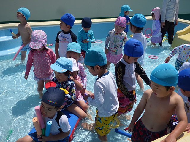待ちに待ったプールを、思い切り楽しんだうめ組・年長組のお友達