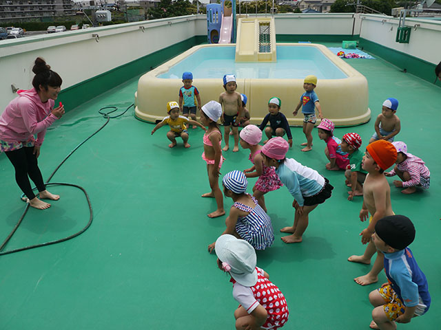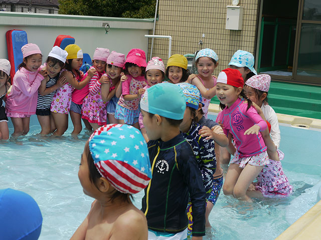 子ども達は元気いっぱいに、プールを楽しんでいました