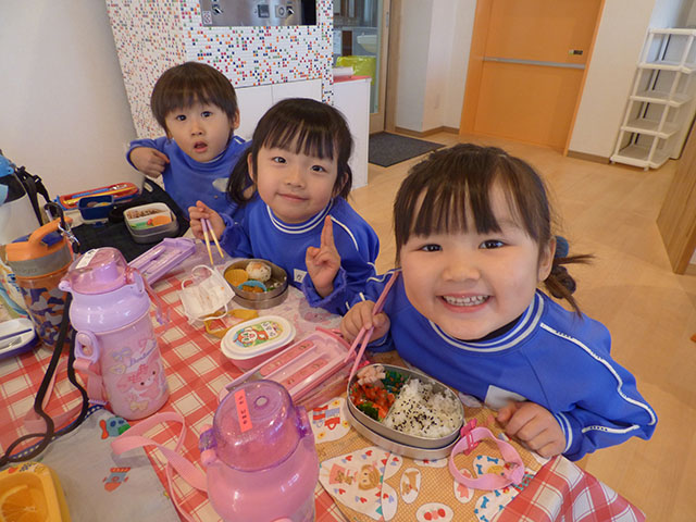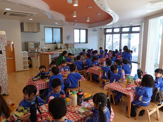 今日のお昼の時間にランチルームから楽しそうな声が・・・今日は うめ組さんとゆず組さんの半分のお友達がランチルームランチを楽しんでいましたクラス関係なく一緒にご飯を食べましたレストランみたいで楽しい~ お部屋では、もも組さんとゆず組さんが、合同昼食会今度はランチルームにいこうねお楽しみにそして、年中組は・・・体操教室でドッチボールを行いました投げるときは顔の横からボールをよく見てすぐに逃げられるようになってきましたよ園庭遊びの時に、いっぱいドッチボールをして沢山楽しもうね