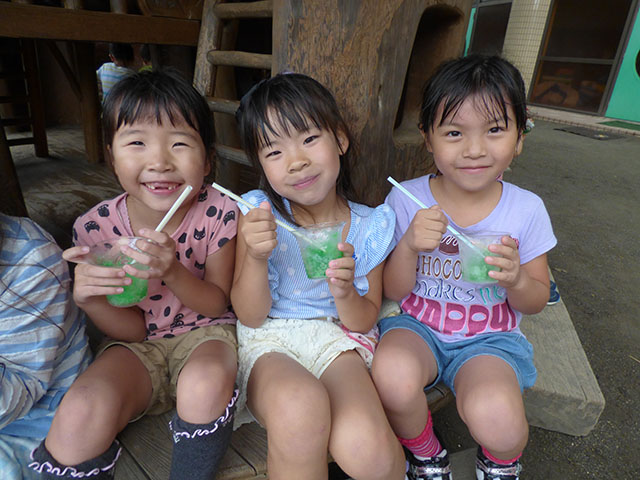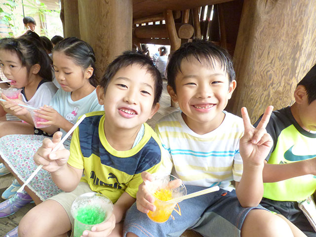 今日は、久しぶりの幼稚園でプールをしたり、かき氷を食べたり、