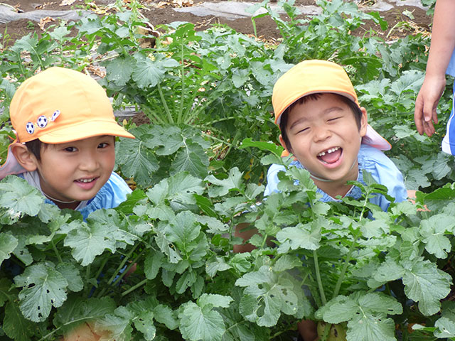 年中組はグランドの畑へ