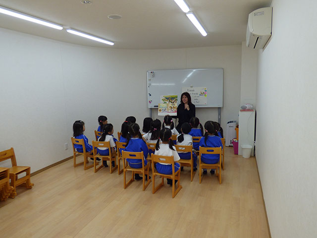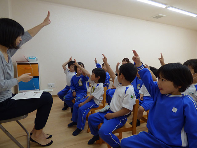 今日は、年中組さんの初めての英語教室