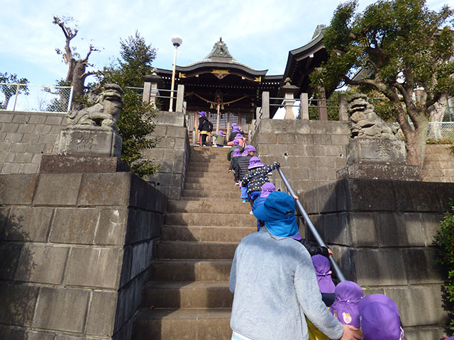 久しぶりのお出かけにウキウキしていたお友達も、神社が見えてくると、
